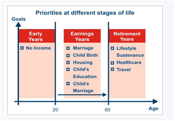 We help you to identify various life stage responsibilities and goals to estimate the corpus required towards achieving these goals. This includes planning for various life-stage goals such as child’s education, marriage and post retirement income along with other short-term goals like contingencies or vacations.